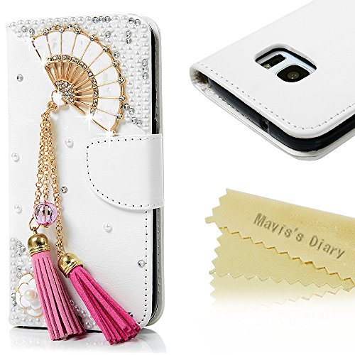 S7 Case,Samsung Galaxy S7 Case - Mavis's Diary 3D Handmade Wallet Bling Crystal Luxury PU Leather Kickstand Magnetic Flip Cover with Shiny Diamonds Elegant Butterfly Flowers - Hot Pink