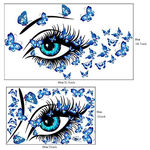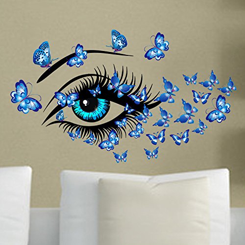 Amaonm Removable DIY Creative 3D Beautiful Girl Blue Eyes & Flying Butterfly Wall Decals PVC Home wall Stickers Murals Decorative Home Decor Bedroom Decorations art Decal Nursery Room Stickers