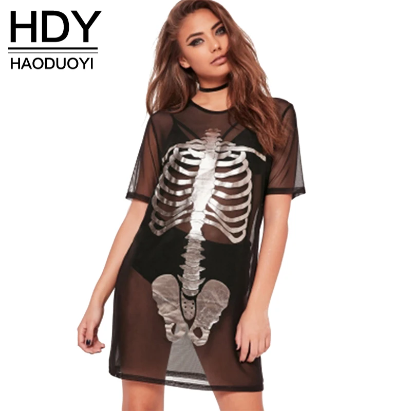 HDY Haoduoyi Fashion Printed Mini Dresses Women Short Sleeve O-neck Female A-line Dresses Punk Sexy Sheer Party Club Dresses | |||||||||||||||||||||||||||||||||||||||