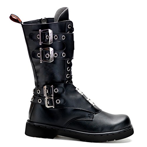 Mens Black Combat Boots Lace Up Vegan Leather Buckles 1 Inch Heels MENS SIZING