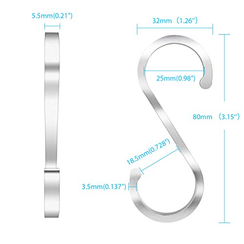 - Size & Amount: 3.15’’H x 1.26’’W (8 * 3.2cm); Maximum bearing weight: 55lb (25kg); Quantity: 20 x Aluminum S shaped hooks