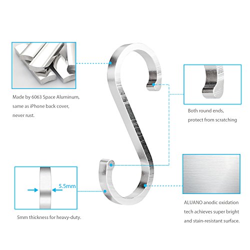 - **ATTENTION: If you want to hang them over rods, please check the size at first!! Solid Aluminum Hooks - Our hooks are made by 6063 SPACE ALUMINUM and anodic oxidation, same as the material of iPhone back cover. Featuring light weight, sturdy and never rust