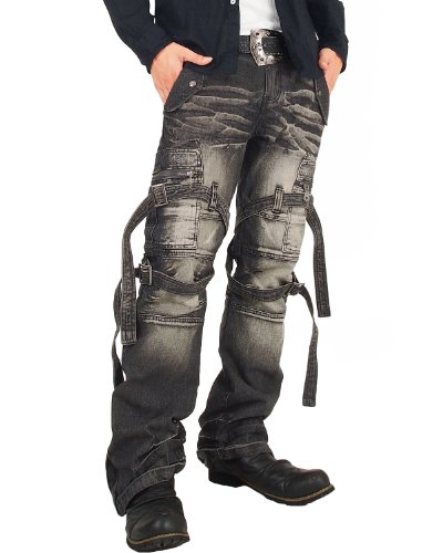 -. Title : (トップイズム) TopIsm 2WAY裾ファスナーパラシュートレッグベルトブーツカットUSED加工デニムパンツ