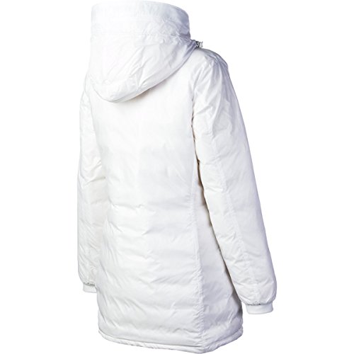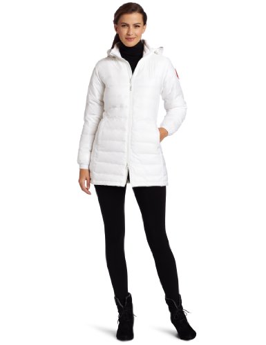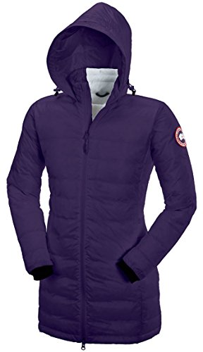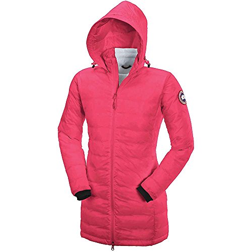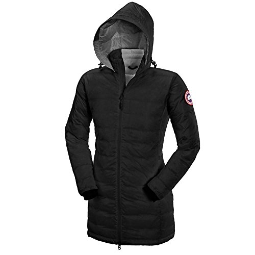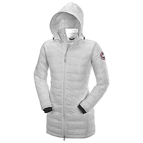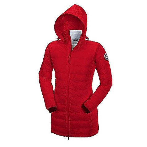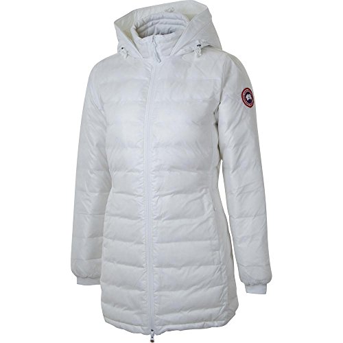 FEATURES of the Canada Goose Women's Camp Down Hooded Jacket Windproof by construction Mid-thigh length provides good protection Down filled collar adjusts with a drawcord to seal out drafts Centre front YKK 2-way locking reversed coil zipper, with Canada Goose logo zipper pull Insulated centre front storm flap that extends over centre front zipper Brushed tricot at chin for comfort Canada Goose logo ribbon runs along centre Two hand pockets secured with YKK reverse coil zippers and zipper pulls Brushed tricot at the back of the neck for increased warmth Internal stretch mesh pocket Integrated hood is constructed at the neckline for versatility and comfort Lycra stretch cuffs for comfort and warmth Brushed tricot lined inner pillow pocket with zipper closureFeature