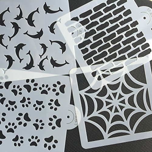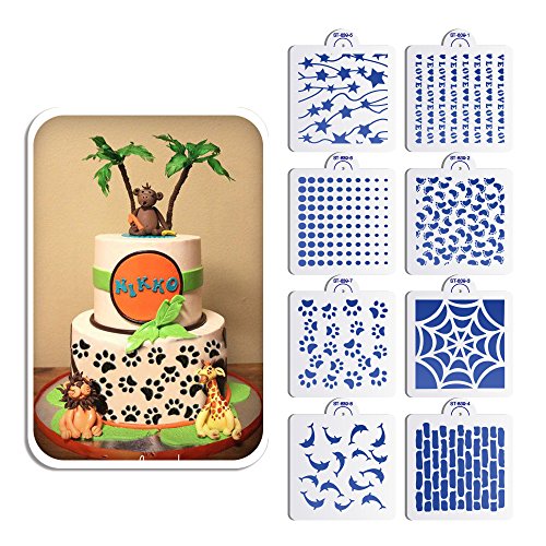 ART Kitchenware 8pcs/set Dolphins/Dots/Wall/Footprint Pattern Stencil Set for Cake Decorating,Stencil for Cake Decoration Decorative Stencil for Cookies ST-839 Beige/Semi-Transparent