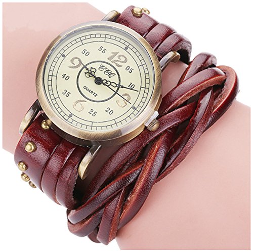 - Ledhill CCQ Classic Leather Fashion Bangle Bracelet Wrist Watch (Brown)