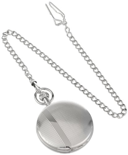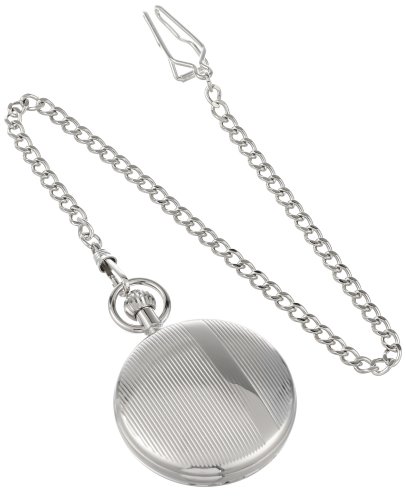 -. Feature : Chrome finish brass 50mm hunter case with a matching curb chain / White dial with date display / Swiss parts quartz movement / Deluxe gift box