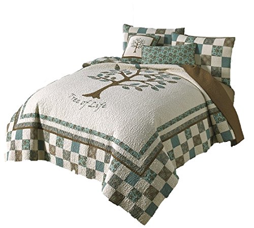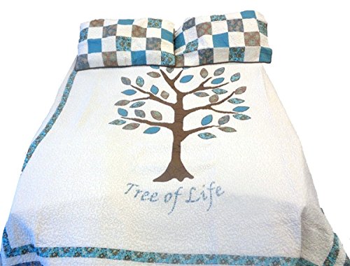 Vintage Tree of Life Mini Set Queen or Full Size Quilt 90 X 90 Inch and 2 Standard Shams