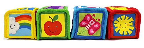 [Product Information]- These four soft fabric blocks are perfectly sized at 3.5 inches on each side. They are sponge filled and not too small or too big for babies to grasp