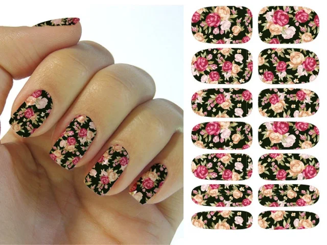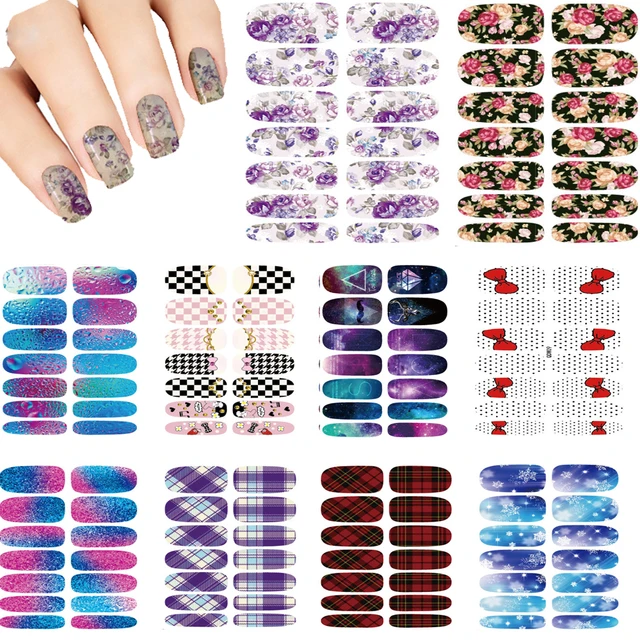 뜨거운 10 개 세트 핫 손톱 아트 스티커 방수 메이크업 물 꽃잎 하라주쿠 스타일의 손톱 스티커 데칼 액세서리