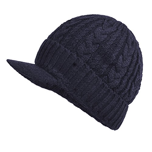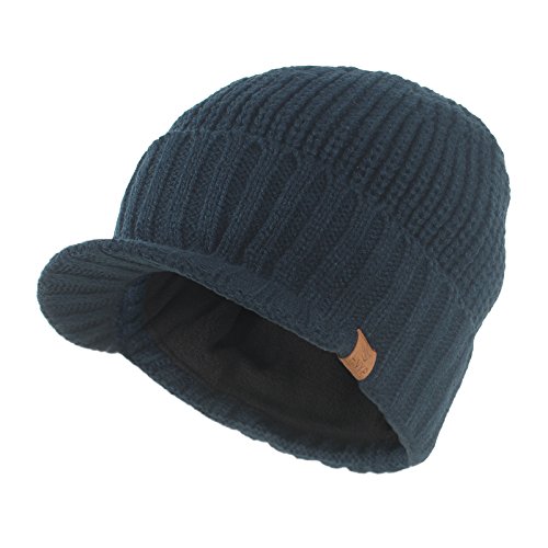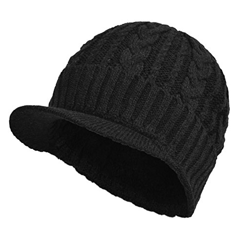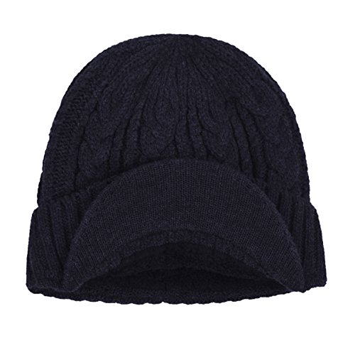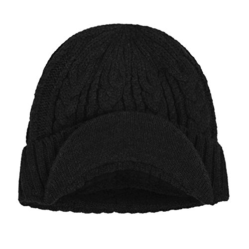 | JaneyRubbins Daily Knit Visor Brim Beanie Hat Fleece Lined Skull Ski Cap |