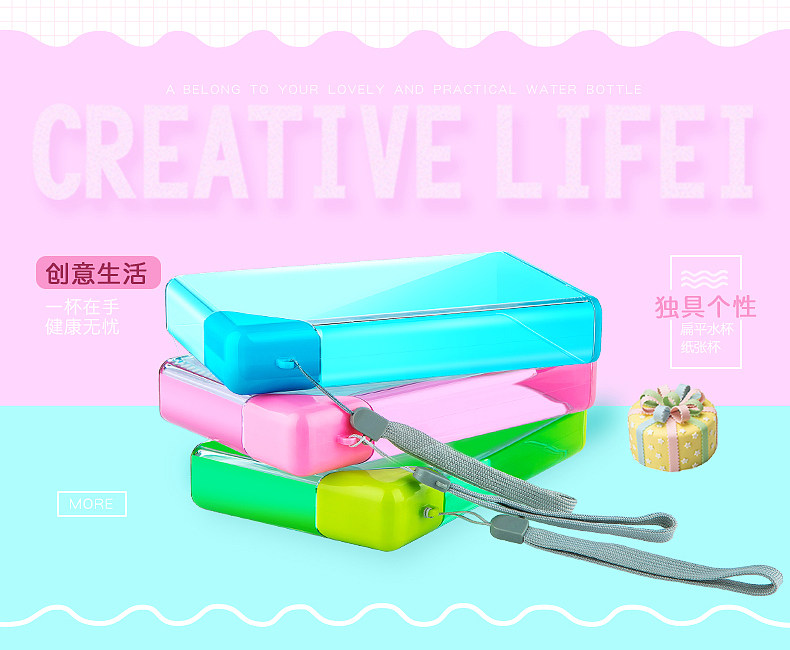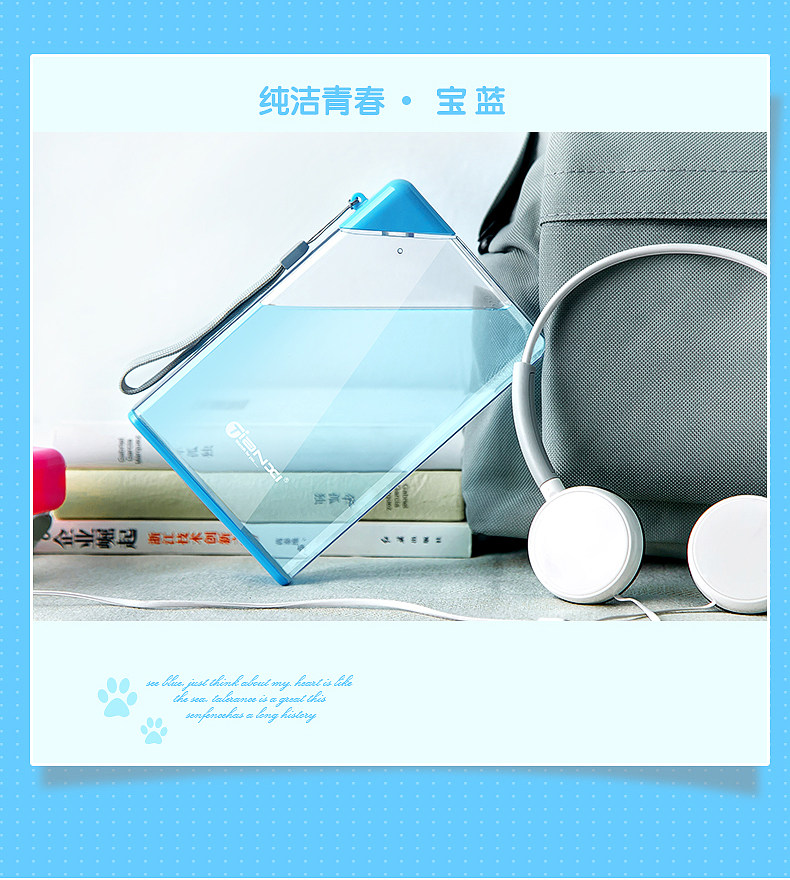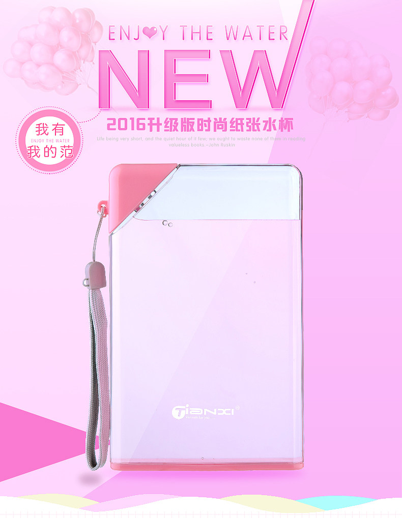 A5扁平纸片纸张水杯韩国创意个性水瓶防漏运动水壶塑料随手杯