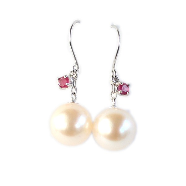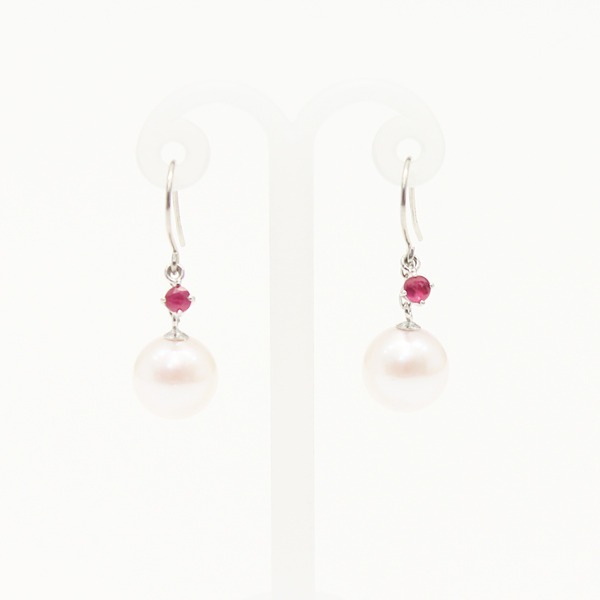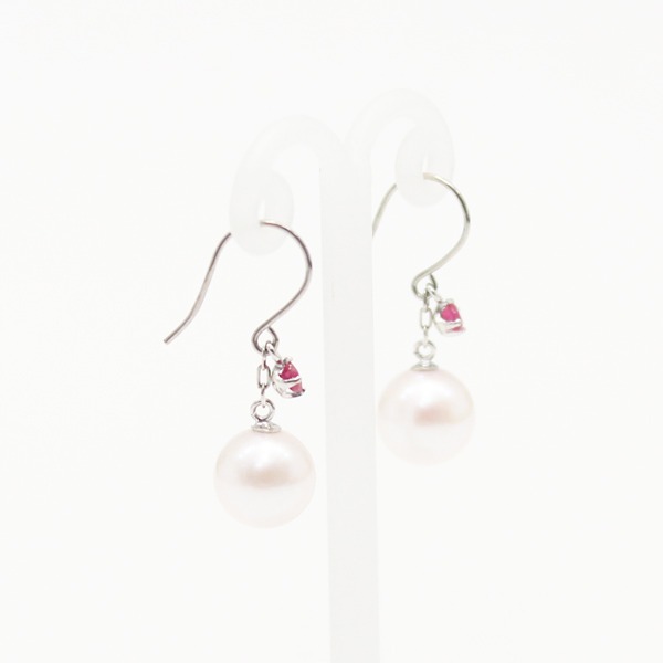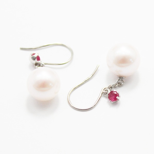 【カラット数】7mm珠真珠2石 ルビー2石合計0.08ct