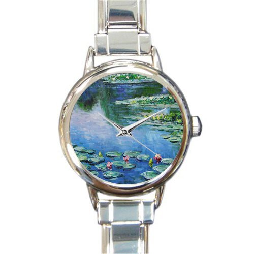 -. Title : Personalized Watch Water Lilies by Claude Monet Round Italian Charm stainless steel Watch - Christmas Guft