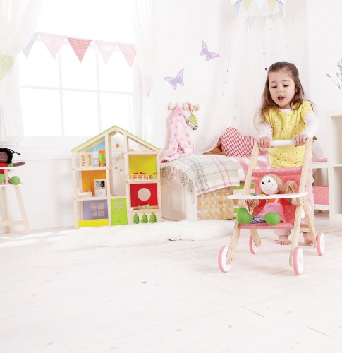 -. Binding : Toy -. Brand : Hape -. Color : Pink -. Department : unisex-child -. EAN : 6943478006263 -. Feature : Time to take your dolly on a walk! Listen as your child pretends to be a parent / Wooden stroller made with top, sustainable materials / Stimulates imaginary play, fantasy story telling, and role playing / Recommended for ages 36 months and up / Non-toxic finishes and child safe materials -. Genre : Role Playing -. IsAdultProduct : 0 -. ItemPartNumber : E3603 -. Label : Hape -. Manufacturer : Hape -. Model : E3603 -. MPN : HAP-E3603 -. PackageQuantity : 1 -. PartNumber : HAP-E3603 -. ProductGroup : Toy -. ProductTypeName : TOYS_AND_GAMES -. Publisher : Hape -. Size : 16 -. Studio : Hape -. Title : Hape - Babydoll Wooden Stroller -. Warranty : Guaranteed against manufacturer defects