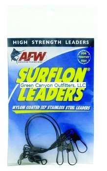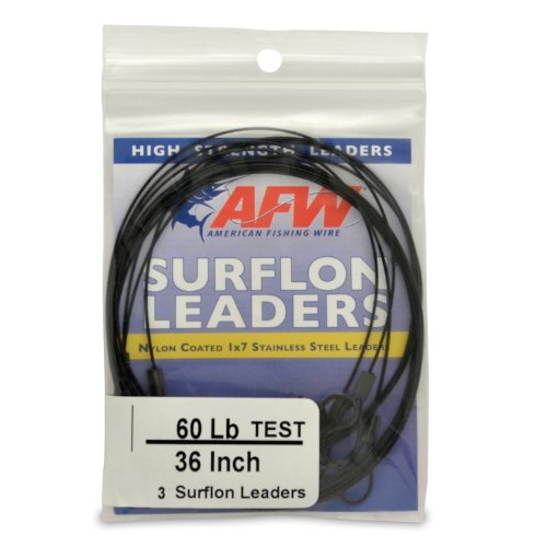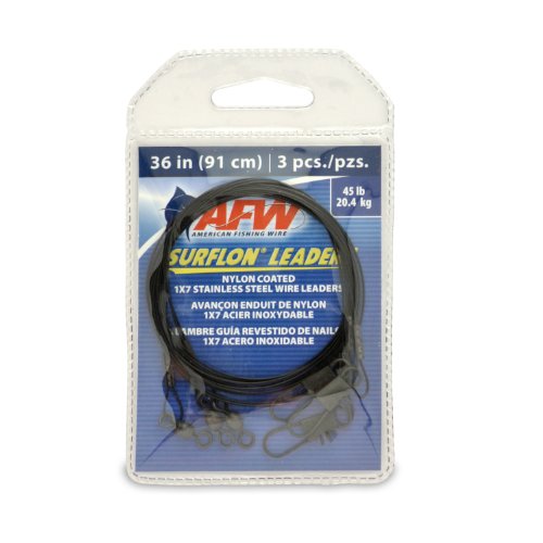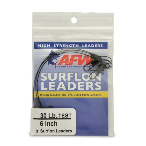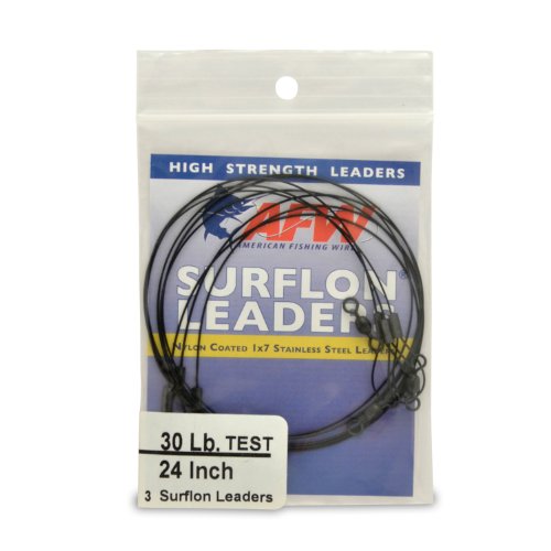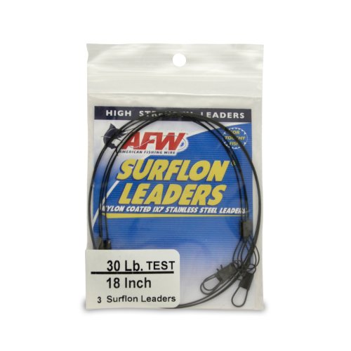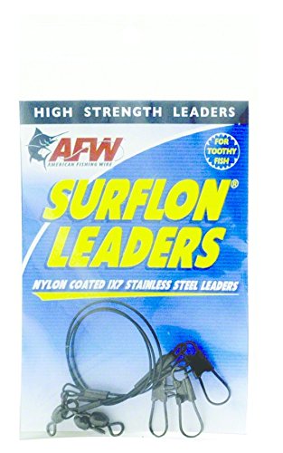 ReleaseDate : 2011-03-22 Studio : American Fishing Wire Publisher : American Fishing Wire Binding : Sports Product Description Heavy-duty Surflon Leaders are made with AFW’s Black, nylon coated Surflon 1x7 stainless steel wire and high quality Sleeves, Swivels, and Lock Snaps. Leaders are double-crimped for extra strength and are great for many types of toothy game fish. Surflon is also available with Blood Red nylon coating as Bleeding Leaders 0