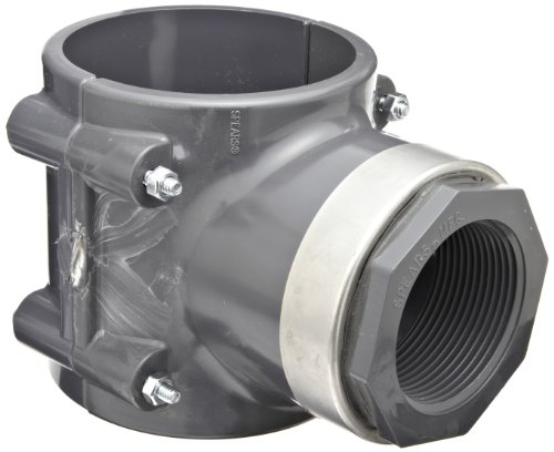Spears 867V-SR Series PVC Clamp-On Saddle with Viton O-Ring, Zink Bolt, Stainless Steel Reinforced Outlet, Schedule 80, 2" IPS OD x 1" NPT Female