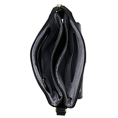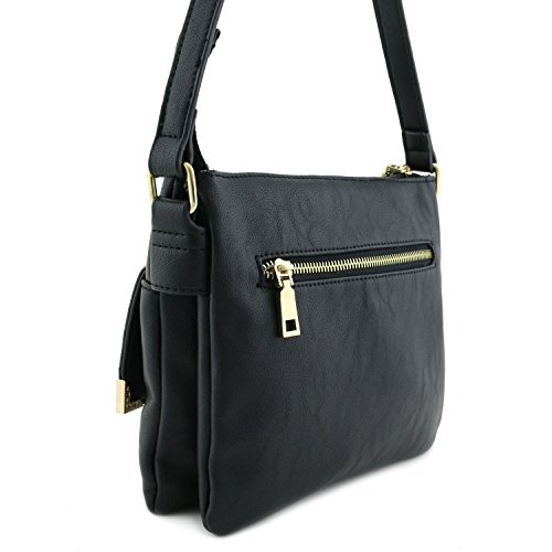 -. Feature : 9" (W) x 7.75" (H) x 2" (D) / Zipper closure / Adjustable shoulder strap with 23" drop / Faux leather & gold tone hardware / 1 zipper pocket & 1 slip pocket inside