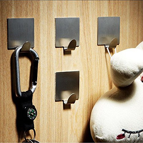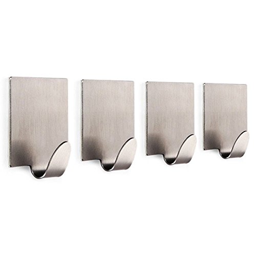 Self Adhesive Hooks Key Rack SUS 304 Stainless Steel Garage Storage Organizer Stick On Sticky Bathroom Kitchen Towel Hanger Wall Mount Contemporary Style 4 Pack