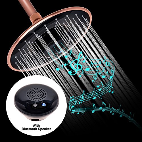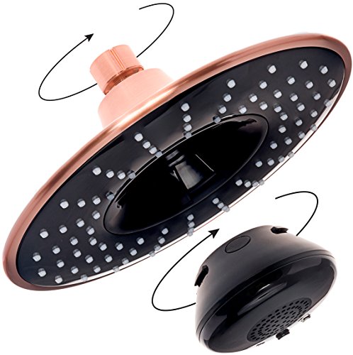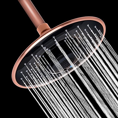 - PRODUCT SPECIFICATIONS - Each unit includes a shower head, wireless bluetooth speaker, and charging cable. Shower head measures 8.5" x 8.5".