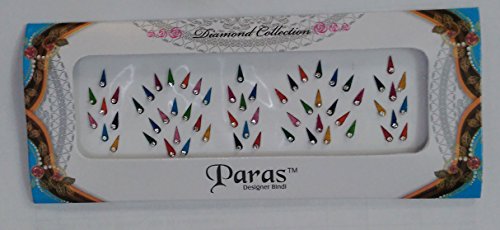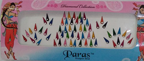 Pack of 12 - Paras Designer Drop Shape Multi Color & Multi Size Rhinestone Reusable Bindi (BC-12)