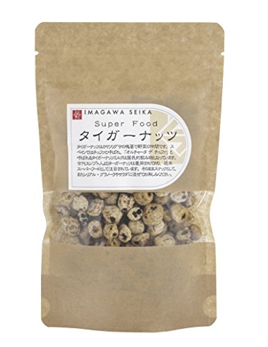 原材料:原材料/タイガーナッツ 栄養成分表示/エネルギー:420kcal、たんぱく質:4.6g、脂質:25.7g、糖質:27.1g、食物繊維:30.8g、ナトリウム:6mg、ビタミンE:4.8mg