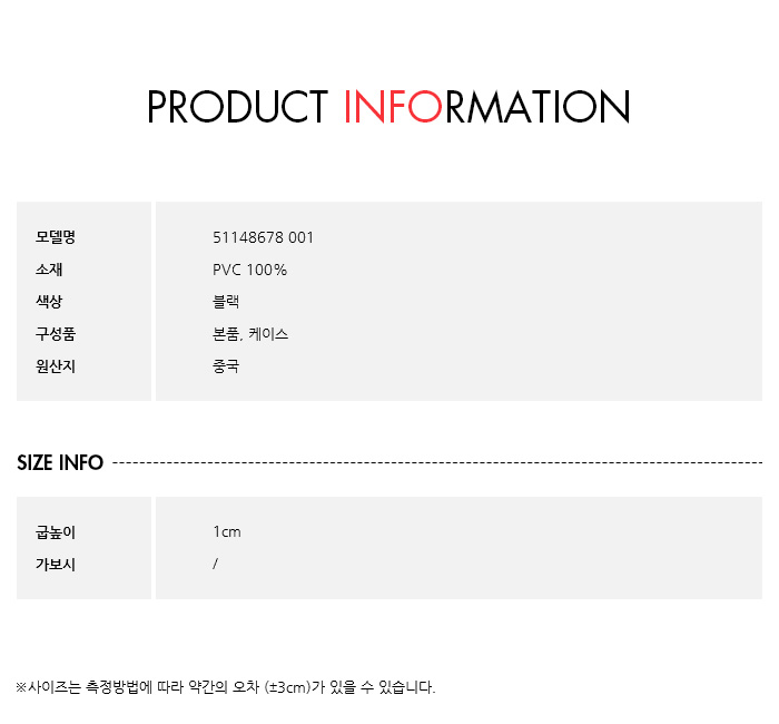 사이즈사이즈 : 5,6,7,8 사이즈 : 5(220mm),5+(225mm),6(230mm),6+(235mm),7(240mm),7+(245mm),8(250mm),8+(255mm),9(260mm),9+(265mm),10(270mm)