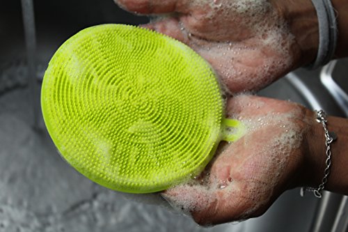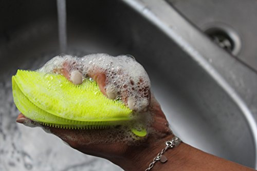 -. Feature : ✔️ GREAT ALTERNATIVE FOR REGULAR MILDEW INFLUENCED SPONGES - Silicone sponges, scrubbers made of high quality food-grade silicone material, BPA free. Temperature range is -60 ℃ to 240 ℃. Updated form structure make them more handful, soap stays on sponge, stronger bristles for better cleaning / ✔️ MULTIFUNCTIONAL PRODUCT USE - The silicone sponges can be used in cleaning all kitchenware, glassware, fruits, can be used in shower as well as areas to clean something within approved temperature range / ✔️ ANIBACTERIAL, MILDEW FREE - Silicone sponges are great invention, plays an alternative role for regular sponges, and clothes which with time start having mildew and bacterial negative affection. Silicone sponges are made from material that will not have any mildew with the span of time, easy clean structure makes them useful in many areas / ✔️ SILICONE SPONGE STRUCTURE - Silicone sponges are created in that way, for soft and tender cleaning, although flexible bristles are able to reach almost any corner. Silicone sponges are a new way for gentle thorough cleaning! / ✔️ SKIN EXFOLIATOR BRUSH - Silicon scrubber works very well as a gentle skin exfoliating scrub pad for sensitive and aging skin