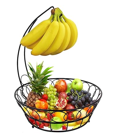 - Size: fruit bowl -12 inch(D) x 4 inch(H),banana hanger height -13 inch