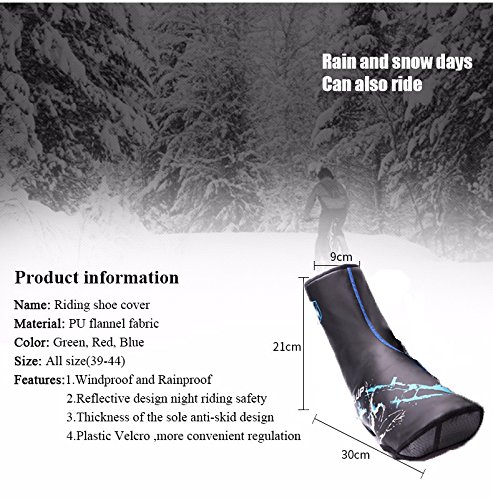 [SMART SIZE,VELCRO DESIGN] Please wear together with cycling shoes. Please measure your cycling shoes or feet before purchase. Shoe cover size: Length: 11.81”(30CM). Height: 8.26” (21CM) Pressure rubber waterproof zipper with Velcro fastenings for adjustable fit,easy to use different people.