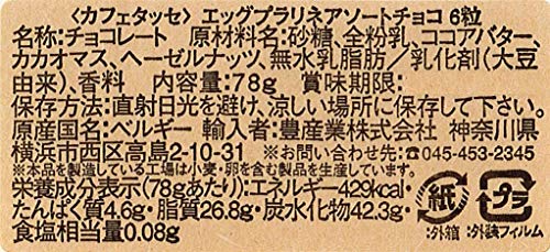 原材料:砂糖、全粉乳、ココアバター、カカオマス、ヘーゼルナッツ、無水乳脂肪/乳化剤(大豆由来)、香料