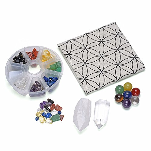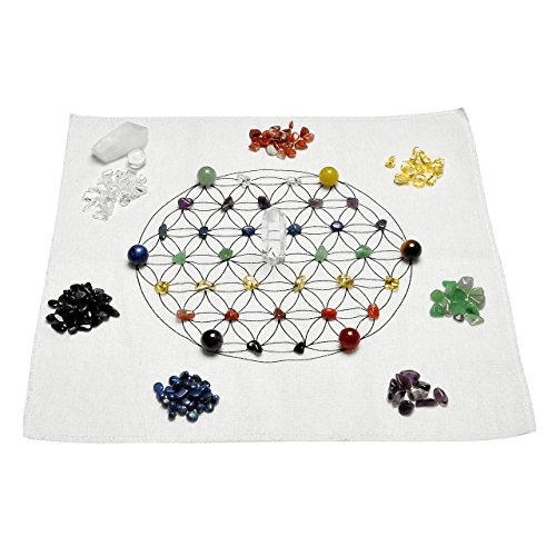 - WHAT'S IN THE PACKAGE?--1 Printed Flower of Life Sacred Geometry Crystal Grids Altar Cloth; 7 Chakra Gemstone Round Beads; 7 Chakra Assorted Chip Gemstones; 1 Tumbled Single Pont Clear Quartz Crystal Wand; 1 Rough/Raw Irregular Points Clear Quartz Crystal Wand. All you need to creat a crystal grid is included.
