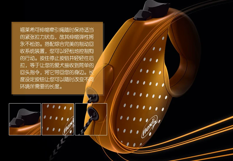flexi德国福莱希荧光黄 宠物狗 大中小型犬 自动伸缩牵引带绳