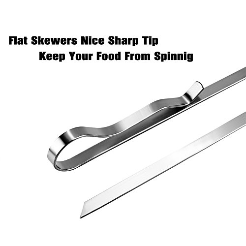 Make Evenly Grilled Skewers - The flat and wide blade style keep your food from spinning/rolling and it make perfectly grilled a lot easier when kabobs were turned on the grill or smoker.