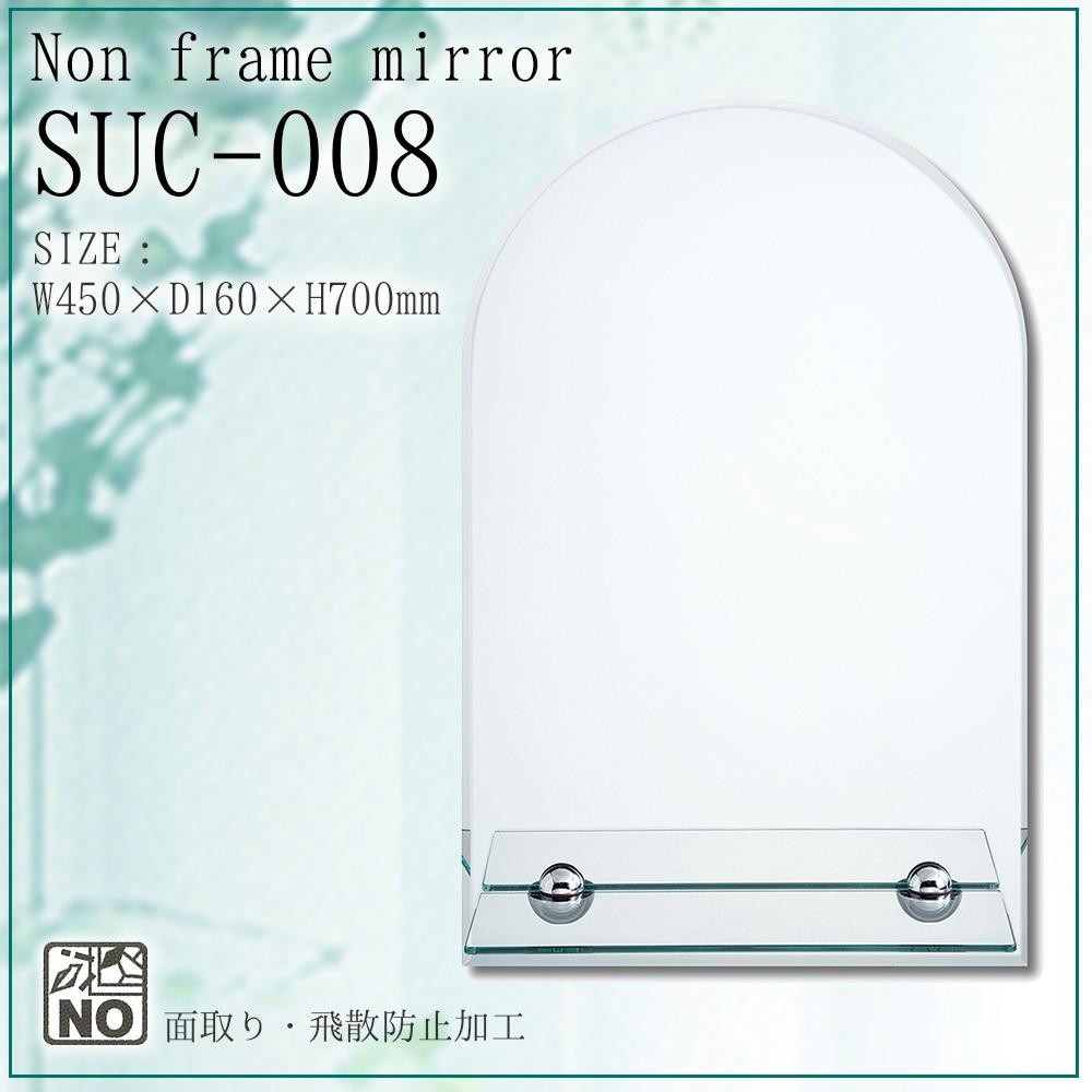 | 透明感のある美しいデザインのノンフレームミラー。 |