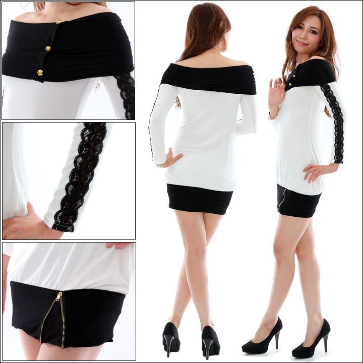 レース配色オフショルワンピース(KR) 大きいサイズ 春 セクシー レディース ギャル服 ギャル 大人 13号 15号 17号 19号 LL 2L 3L 4L 5L 6L 6L