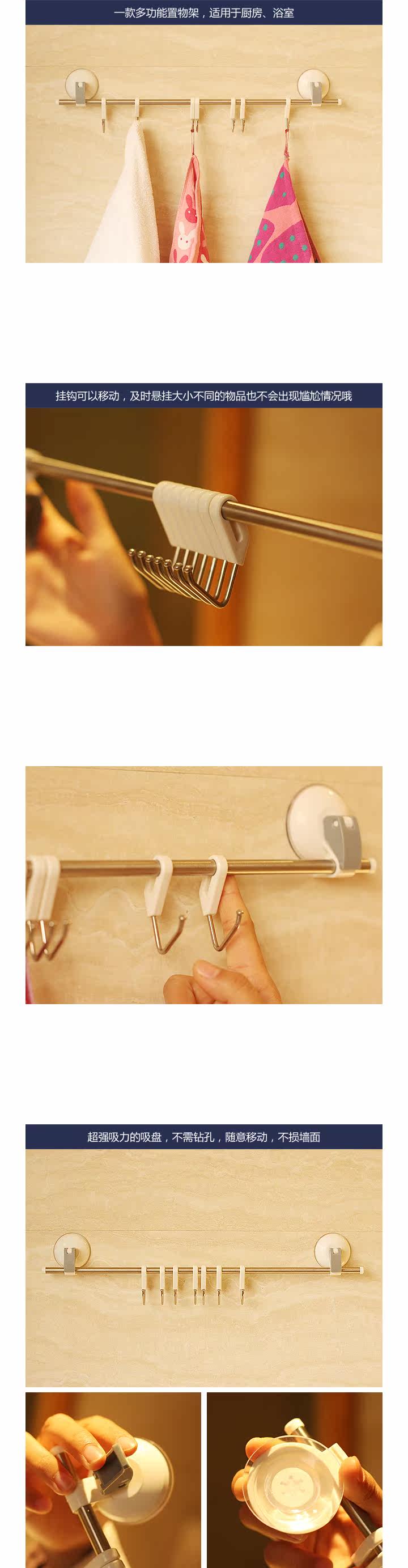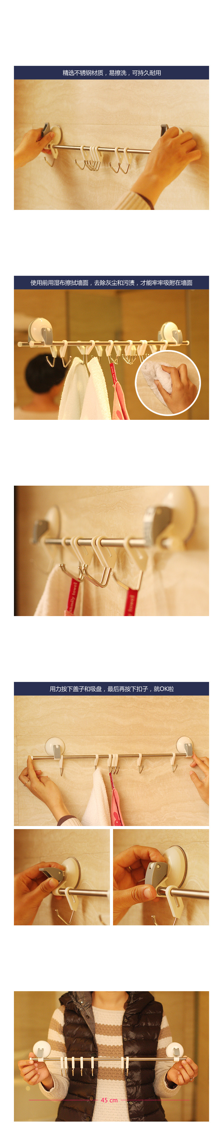 Bathrooms powerful vacuum suction cup hook hook stainless steel kitchen 7 with 3.5kg weight limitAdsorption method: sucker Material: Stainless steel hook Number: 7 Hook Type: HookDimensions are as follows