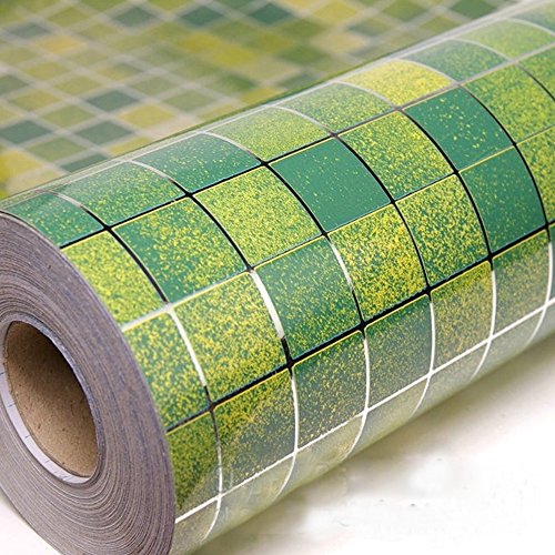 -. Title : yazi Aluminum Foil Tile Sticker Mosaic Kitchen Shelf Drawer Liner 17x98 Inch,Green