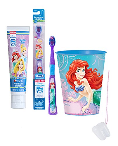 -. Binding : Health and Beauty -. Brand : Disney -. EAN : 0761656257339 -. Feature : Crest + Oral-B Pro-Health Stages helps kids learn to brush their best with products designed to support healthy oral hygiene. Even better, they are compatible with the Disney MagicTimer App by Oral-B that will help your child brush longer. So get Crest + Oral-B Pro-Health Stages and help your kids learn proper oral care habits to last them a lifetime. / (1) Crest Pro-Health Stages Disney P.R.Incess Kid's Bubble Gum Flavored Toothpaste 4.2 Oz / (1) Disney P.R.Incess "Ariel" Soft Manual Toothbrush / (1) Disney P.R.Incess Ariel 16oz Plastic Mouth Wash Rinse Cup / Plus Bonus "Remember to Brush" Visual Aid Tooth Saver Necklace. Hang it in their bathroom or by their bed so they remember to keep their chompers sparkly fresh. You could also use these tooth charms to save one of your child's baby teeth. -. IsAdultProduct : 0 -. Label : Crest -. Manufacturer : Crest -. MPN : 96335477 -. PackageQuantity : 3 -. PartNumber : 96335477 -. ProductGroup : Health and Beauty -. ProductTypeName : HEALTH_PERSONAL_CARE -. Publisher : Crest -. Studio : Crest -. Title : Disney P.R.Incess "Ariel" Inspired 3pc Bright Smile Oral Hygiene Set! Includes Soft Manual Toothbrush, Toothpaste & Mouthwash Rise Cup! Plus Bonus "Remember to Brush" Visual Aid! -. UPC : 761656257339