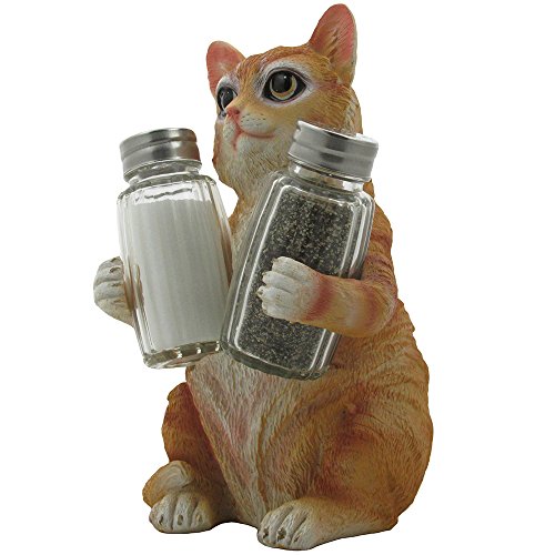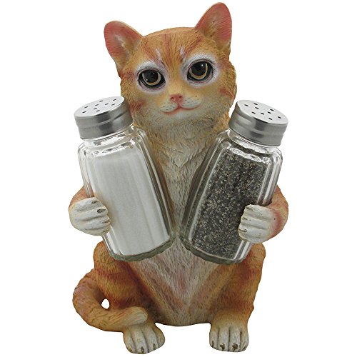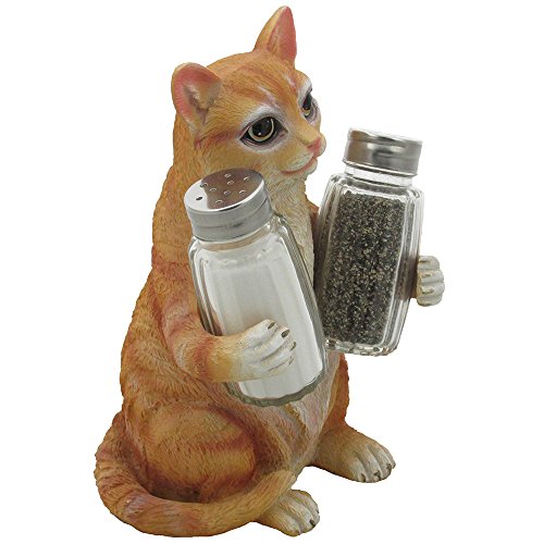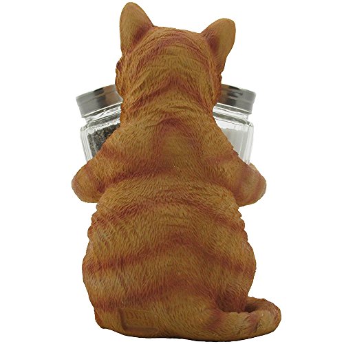 Orange Tabby Kitty Cat Glass Salt & Pepper Shaker Set with Holder Figurine in Decorative Pet Statues and Sculptures As Kitten Kitchen Table Decoration Gifts for Cat Owners by Home-n-Gifts