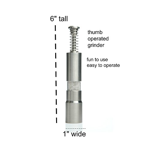 - FREE UP ONE HAND with Grind Gourmet’s Original Herb Grinder. Whether you are adding Himalayan sea salt or peppercorns to a dish/recipe these salt and pepper grinders easily do the job. Our one handed pepper mill and salt grinder will allow you to grind some fresh sea salt seasoning onto a hard-boiled egg or burrito while holding it with the free hand, because thumb salt and pepper grinders do the work conventional two-hand operated salt and pepper mills require.