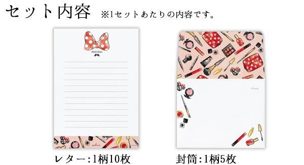 | ミニーちゃんのリボンやコスメ柄がおしゃれなレターセット♪ |
