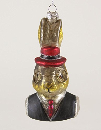 Cody Foster Gentleman Hare Ornament Hand-Blown Glass Vest Tie Hat Glasses
