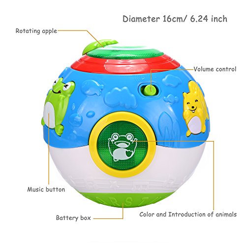 -. Binding : Apparel -. Brand : Arshiner -. Department : unisex-baby -. Feature : Brand: Arshiner / Material: Plastic.Style: Music Sound Toy.Design: Cartoon Educational Toy / Package Content:1 x Music Sound Toy Ball.Shape: Ball. Size: Diameter 16cm/ 6.24 inch / Toy Ball provides musical foundation for little ones.Features bright colors.Sides light up to the tempo of the music.This is a used to Touch and Crawl ball that works great.This introduces shapes, numbers, animals and animal sounds to baby.Plus being interactive this will roll around and interact with your child.Features lots of button to push. / WARNING: CHOKING HAZARD -- Small parts. Not for children under 3 yrs. -. ProductGroup : Apparel -. ProductTypeName : ACCESSORY -. Title : Arshiner Toddler Kids Magic Cube Cartoon Music Sound Ball With Light Educational Learning Toys
