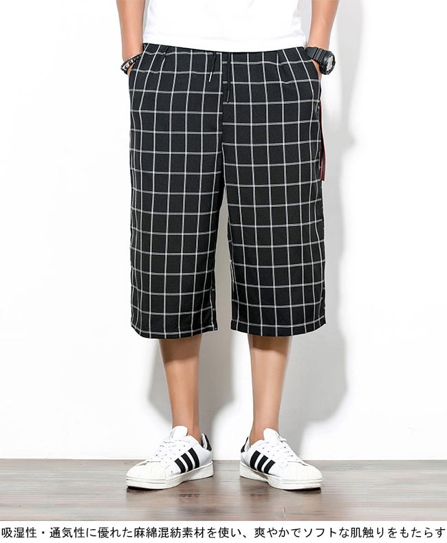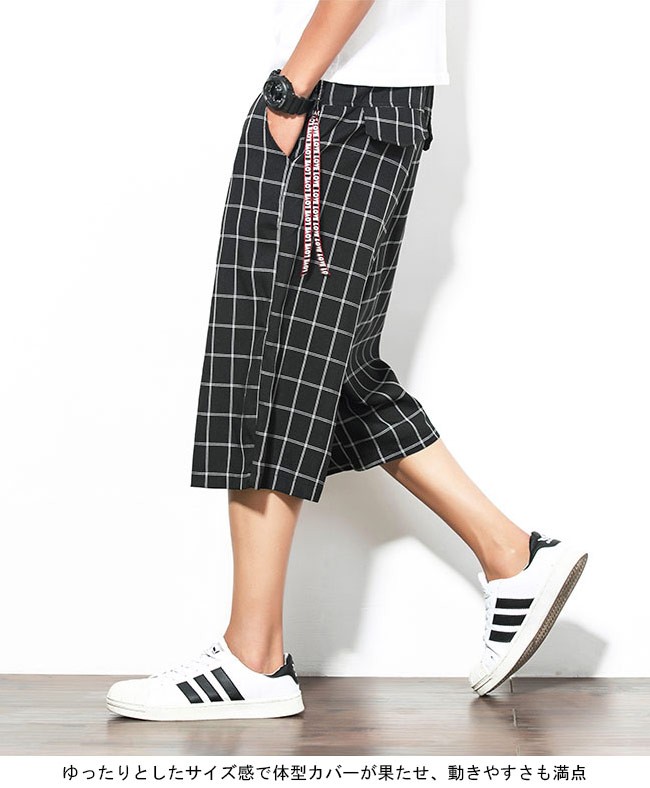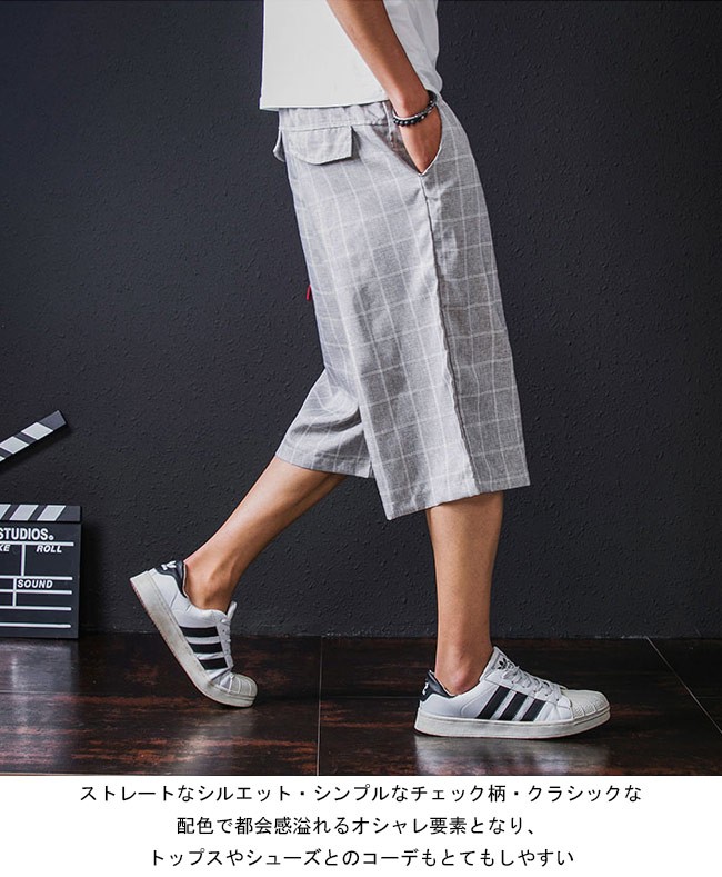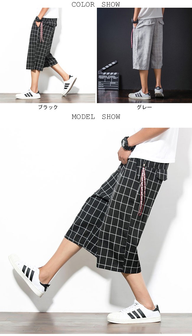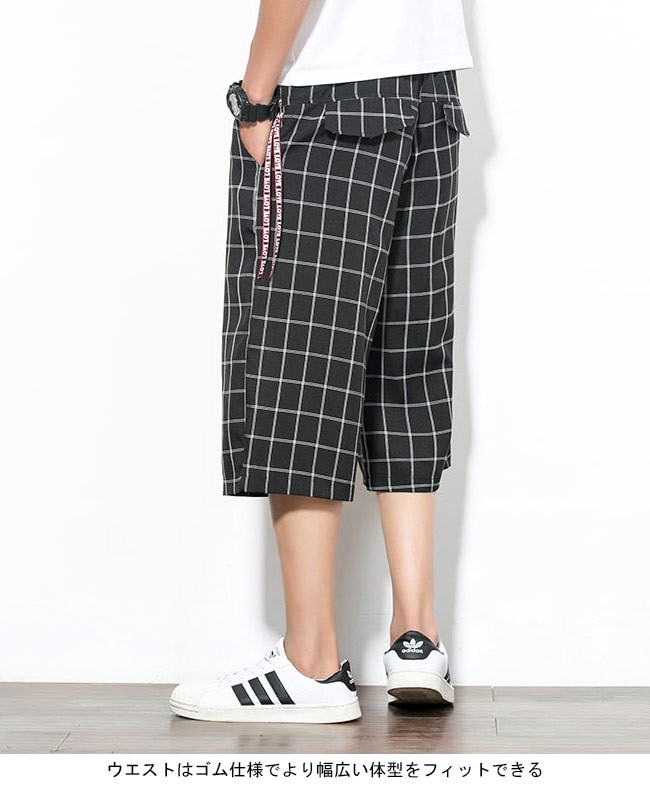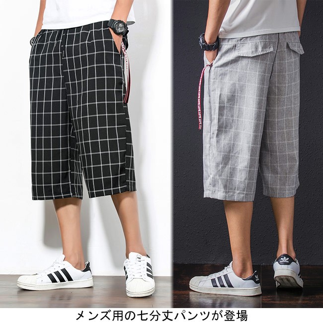 七分丈パンツ メンズ チェック柄 ゆったり ウエストゴム ストレートパンツ 七分丈 男性用 ボトムス ワイドパンツ 夏物 着まわし オシャレメンズ用の七分丈パンツが登場吸湿性・通気性に優れた綿麻混紡素材を使い、爽やかでソフトな肌触りをもたらすゆったりとしたサイズ感で体型カバーが果たせ、動きやすさも満点ウエストはゴム仕様でより幅広い体型をフィットできるストレートなシルエット・シンプルなチェック柄・クラシックな配色は都会感溢れるオシャレ要素となるカラー:ブラック グレー素材 綿麻混紡サイズ(cm) M L XL 2XL 3XL 4XL 5XLM ウエスト(ゴム仕様)70-73 総丈69 ヒップ108L ウエスト(ゴム仕様)76-80 総丈70 ヒップ112XL ウエスト(ゴム仕様)80-86 総丈71 ヒップ1152XL ウエスト(ゴム仕様)86-93 総丈72 ヒップ1183XL ウエスト(ゴム仕様)96-103 総丈73 ヒップ1224XL ウエスト(ゴム仕様)103-108 総丈74 ヒップ1255XL ウエスト(ゴム仕様)106-116 総丈75 ヒップ128ご注意:※サイズは平置きサイズです。素人採寸ですので、若干の誤差がございます、ご了承ください。