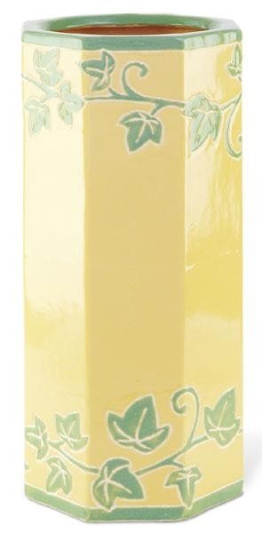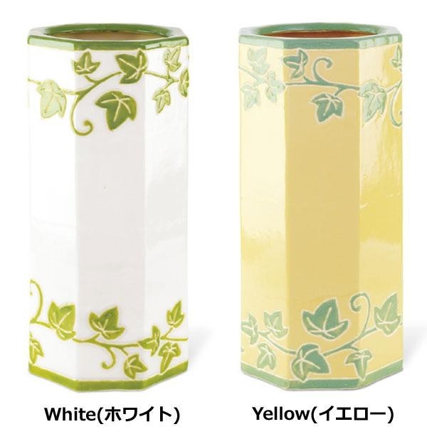 八角形の面にアイビーの模様が描かれた、ナチュラルな印象のアンブレラスタンドです。爽やかな陶器の質感が、玄関を明るく彩ります。 |
