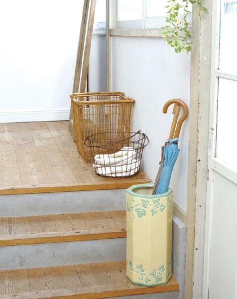 | 八角形の面にアイビーの模様が描かれた、ナチュラルな印象のアンブレラスタンドです。爽やかな陶器の質感が、玄関を明るく彩ります。 |