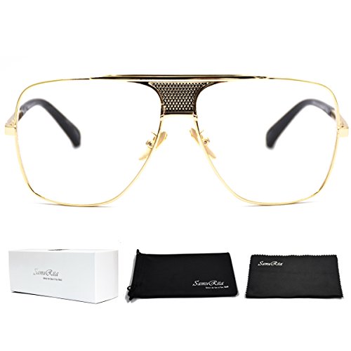 SamuRita Metal Celebrity Flat Top Aviator Sunglasses Oversized Designer Shades