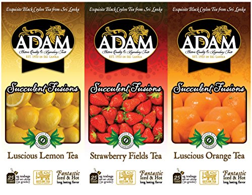 -. Binding : Misc. -. Brand : Adam -. EAN : 0858194003938 -. Feature : An exquisite selection of three of our best selling Citrus and Berry flavored iced teas / Luscious Lemon Tea: premium high grown Ceylon tea blended with real lemon zest and natural lemon flavor / Strawberry fields tea: premium high grown Ceylon tea blended with real strawberry fruit pieces and a natural strawberry flavor / Luscious Orange Tea: premium high grown Ceylon tea blended with real Orange zest and natural orange flavor / Each pack contains 25 individually wrapped teabags: specially blended for iced tea, one teabag makes 12 - 16 ounces of iced tea -. Label : Adam Tea -. Manufacturer : Adam Tea -. ProductGroup : Grocery -. ProductTypeName : GROCERY -. Publisher : Adam Tea -. Studio : Adam Tea -. Title : Very Berry Citrus Refreshing Iced Tea -. UPC : 858194003938