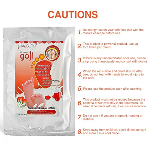 ★[BEFORE USE]:you need wash feet with warm water stay at 10-20 minutes,wait the feet are soft, because it helps skin absorbed the feet mask essence.And everyday use warm water to wash feet will have the better use effect.